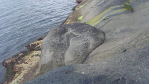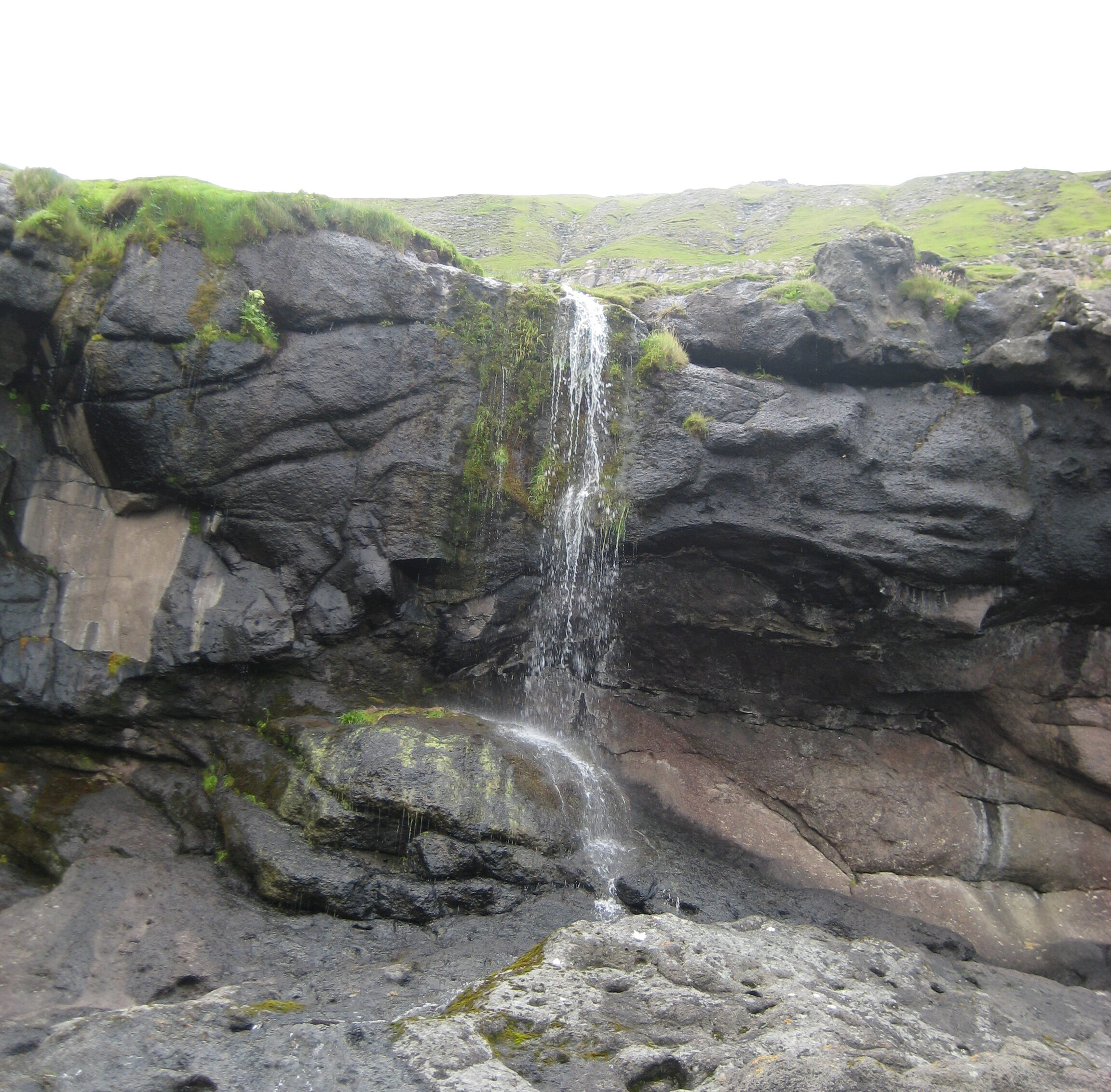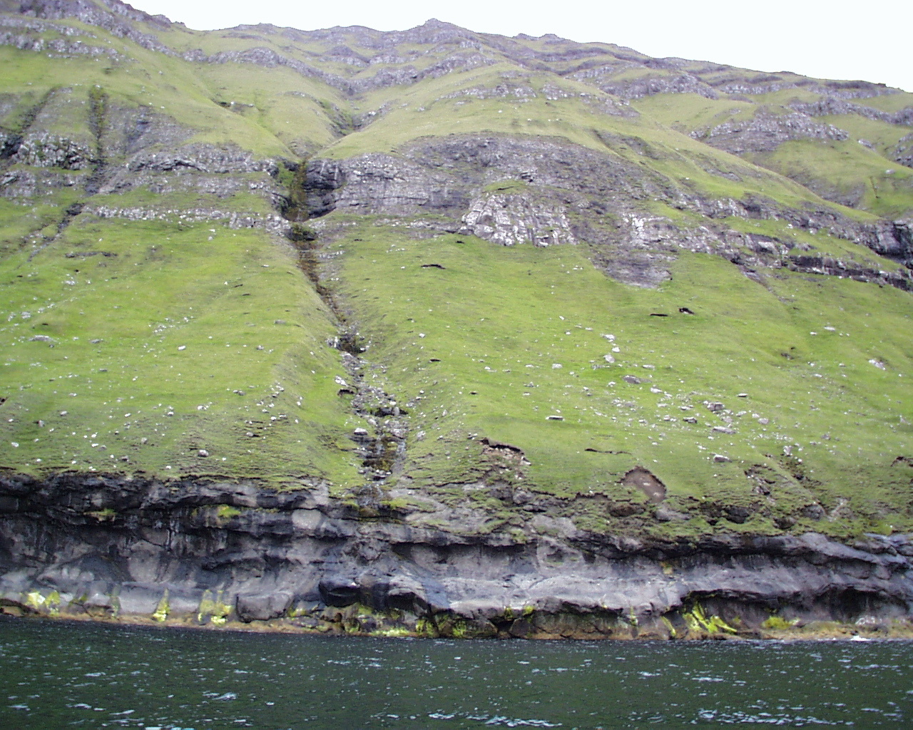 Áin á Føroyaklettinum og Føroyakletturin (vinstrumegin ánna – niðri við sjógvin)